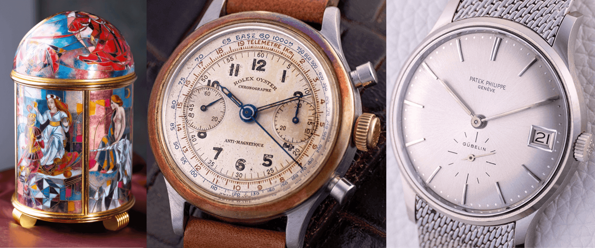 As FutureGrail continues to uncover rare and extraordinary timepieces from the golden eras of watchmaking, it becomes evident that certain creations stand apart not merely as instruments of time but as symbols of art, innovation, and evolution. Each piece tells a story of the brand’s identity, of the craftspeople who shaped it, and of an era’s creative spirit. Among the treasures that embody this philosophy are three exceptional examples that are up for auction this November: a Renaissance-inspired Patek Philippe dome clock, Rolex’s first Oyster chronograph, and an understated Patek Philippe co-signed by Gübelin. Together, they form a remarkable narrative of ingenuity and artistry across decades.