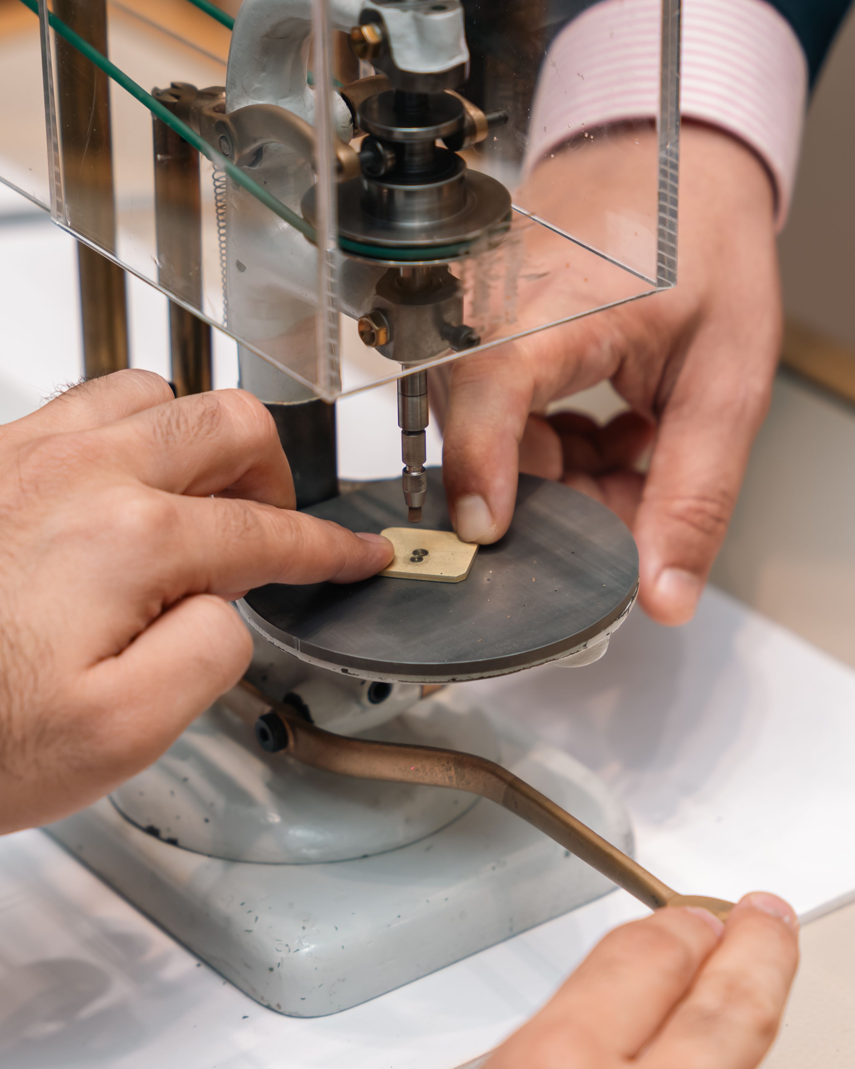 The Perlage machine – typically locked away in the Vallée de Joux manufacture – sat in the room. Collectors didn't just see it. They used it. Their hands on the same tools master artisans use to achieve that signature circular grain finish. The kind of access that makes you realize: this doesn't happen for just anyone.