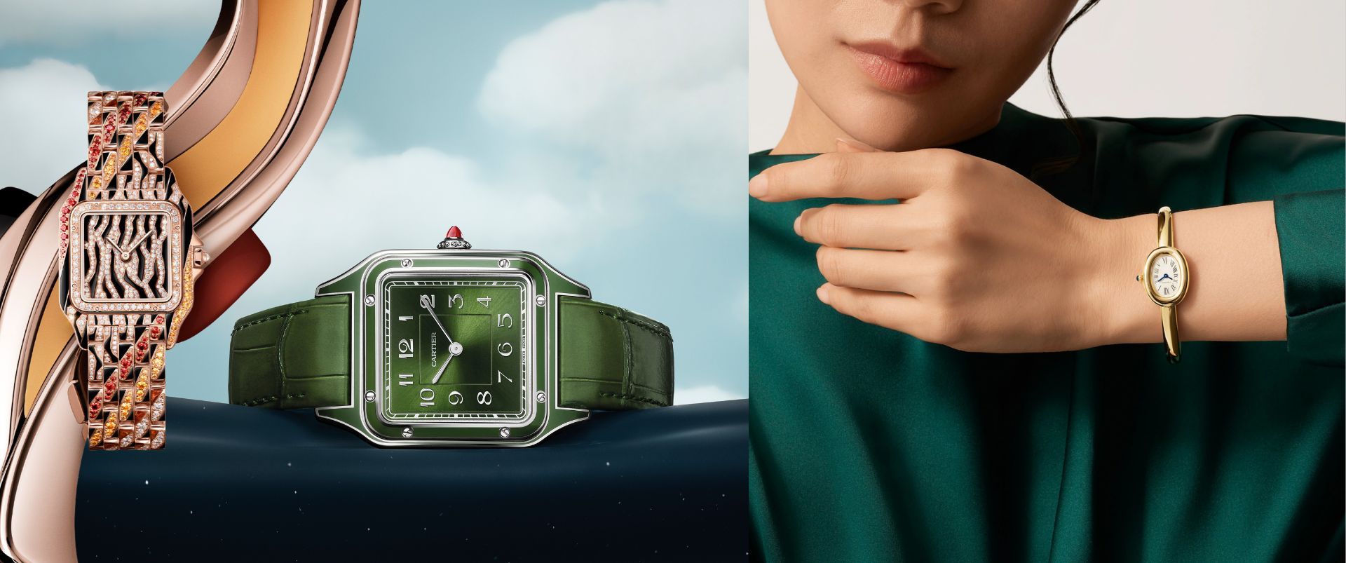 At the more rarefied end of the spectrum, Cartier Privé continues to function as a laboratory for the maison’s most emblematic forms. This year’s chapter seems to gather historically significant shapes and reinterpret them through precious materials, distinctive colour signatures, and highly specialized movements. Production appears deliberately restrained, reinforcing the aura of objects intended for connoisseurs rather than broad visibility.
